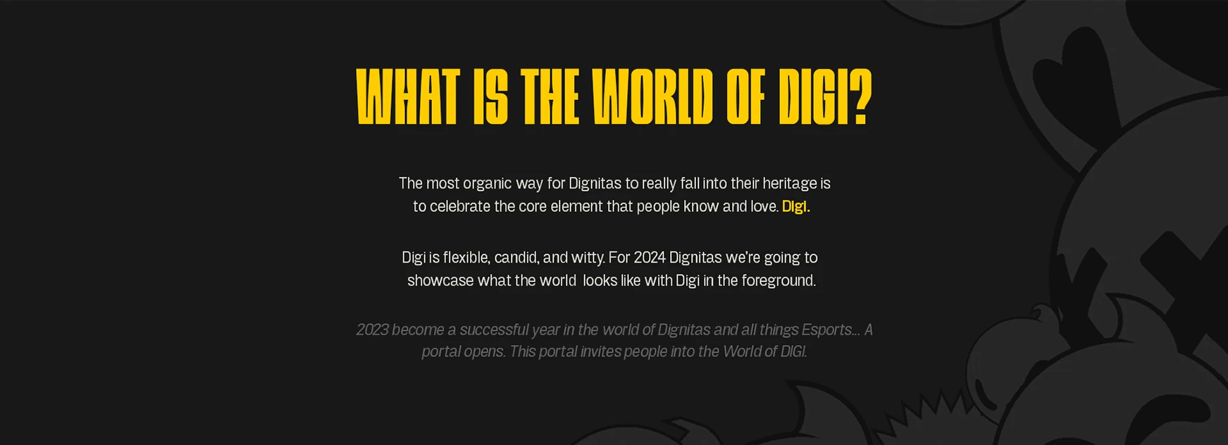Dignitas wanted to set their mark with expanding on their mascot Digi. So we created the world of Digi.